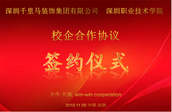 每一步都在確立新高度的深圳千里馬裝飾集團(tuán),迎來了新的校企合作關(guān)系。 2019年11月8日,深圳千里馬裝飾集團(tuán)有限公司(簡(jiǎn)稱深圳千里馬裝飾集團(tuán))與深圳職業(yè)技術(shù)學(xué)院(簡(jiǎn)稱深職院)校企合作簽約儀式在深圳千里馬裝飾集團(tuán)總部舉行。 深圳千里馬裝飾集團(tuán)董事長(zhǎng)李向東、深職院建筑與環(huán)境工程學(xué)院喻圻亮副院長(zhǎng)、吳剛博士等人參加了本次簽約儀式。 深職院喻圻亮副院長(zhǎng)針對(duì)本次校企合作,詳細(xì)介紹了深職院的辦學(xué)規(guī)模、師資建設(shè)、教學(xué)建設(shè)、學(xué)術(shù)研究、人才培養(yǎng)模式等方面的情況,讓我們對(duì)深職院有了深刻的了解,同時(shí)也獲得了深圳千里馬裝飾集團(tuán)董事長(zhǎng)李向東的高度認(rèn)可。 深圳千里馬裝飾集團(tuán)董事長(zhǎng)認(rèn)為,人才本身是企業(yè)的核心力量。正所謂“終身之計(jì),莫如樹人。”人才資源位于企業(yè)未來的發(fā)展道路上的首要位置,人才培養(yǎng)、引進(jìn)、使用等機(jī)制需要不斷革新,努力培養(yǎng)出一線領(lǐng)軍創(chuàng)新人才,為“致力于改善客戶的生活、工作環(huán)境”盡綿薄之力。 通過本次深度交談,深圳千里馬裝飾集團(tuán)與深職院達(dá)成一致意見,在長(zhǎng)期合作、相互信任的基礎(chǔ)上,建立了校企戰(zhàn)略合作聯(lián)盟關(guān)系。 深職院將作為深圳千里馬裝飾集團(tuán)“后備人才基地”,開啟深圳千里馬裝飾集團(tuán)的納賢新模式。同時(shí),深圳千里馬裝飾集團(tuán)將推薦高級(jí)工程師、管理人員作為深職院的客座教授,參與深職院的教學(xué)計(jì)劃制定、課程設(shè)置。此外,深圳千里馬裝飾集團(tuán)還將為深職院提供科研項(xiàng)目的合作機(jī)會(huì),平等互利,共同發(fā)展。 簽約儀式 深圳千里馬裝飾集團(tuán)將不斷堅(jiān)持企業(yè)發(fā)展人才觀,不斷發(fā)掘創(chuàng)新型、高技術(shù)、高技能的人才,同時(shí)深圳千里馬裝飾集團(tuán)的納賢大門隨時(shí)敞開,歡迎各位有志之士的加盟。