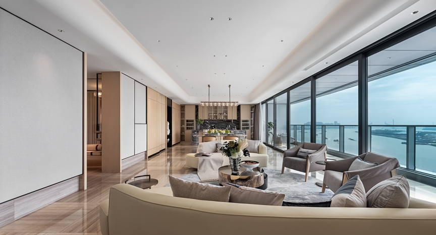 明珠灣壹號位于廣州市南沙區,是擁有海景視野的高端公寓。亦是目前越秀地產集團裝修標準最高的大平層公寓,裝修標準接近一萬元每平米,售價在7萬元~9萬元一平方米。無論從套內戶型格局還是國際設計風格、高檔品質精裝及智慧系統功能,全面匹配精英人群生活所需,致力于打造灣區人居典范。
