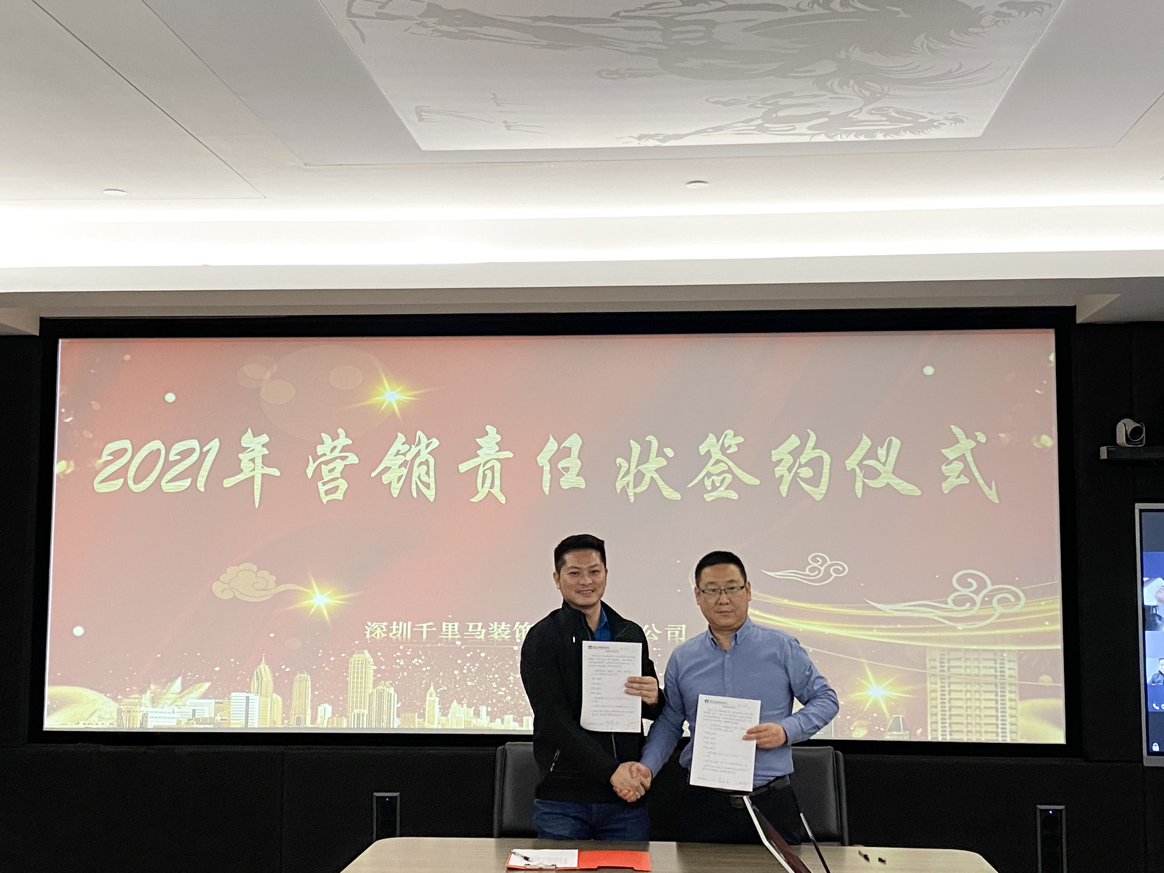 2月27日,深圳千里馬裝飾集團(tuán)全體營銷將士用鏗鏘有力的聲音共同宣讀誓言:2021年營銷目標(biāo)必達(dá)。