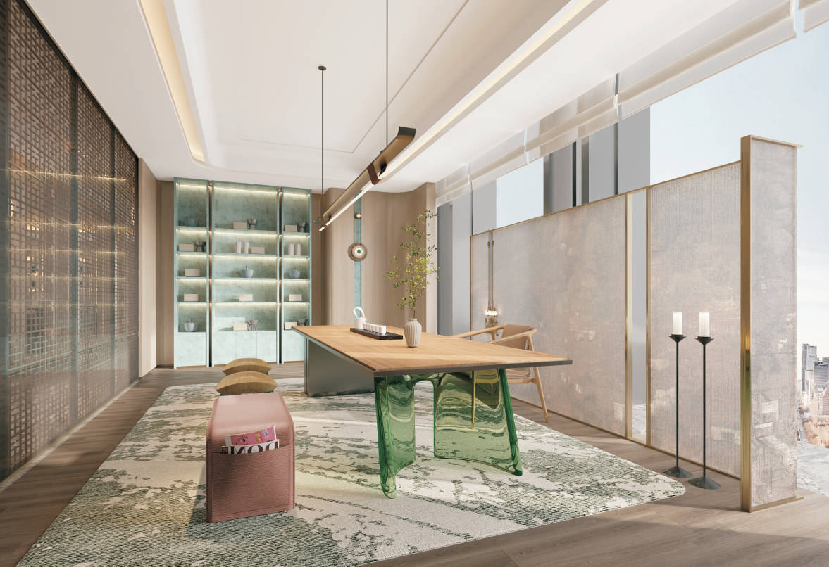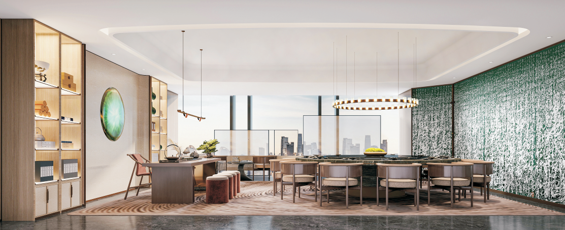 前海紫荊港灣會(huì)所的整體設(shè)計(jì)走新東方風(fēng)格。本次的設(shè)計(jì)理念,是希望隱于鬧市,藝文養(yǎng)心,是都會(huì)中的桃花源,總體表達(dá)低調(diào)奢華和內(nèi)斂雅致的設(shè)計(jì)風(fēng)格,將現(xiàn)化風(fēng)格和傳統(tǒng)元素相互融合,形成豐富的感觀體驗(yàn),為客戶帶來返璞歸真的全新感觀體驗(yàn)!海派東方,演繹奢意東方之美!將柔和的線條滲透于各空間,讓水之意向以抽象的方式回歸空間,行走于墻面,流淌于天花,似靜似動(dòng)。